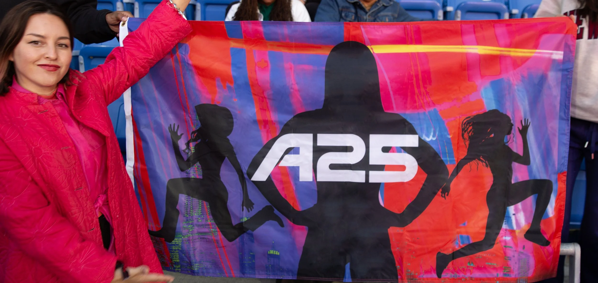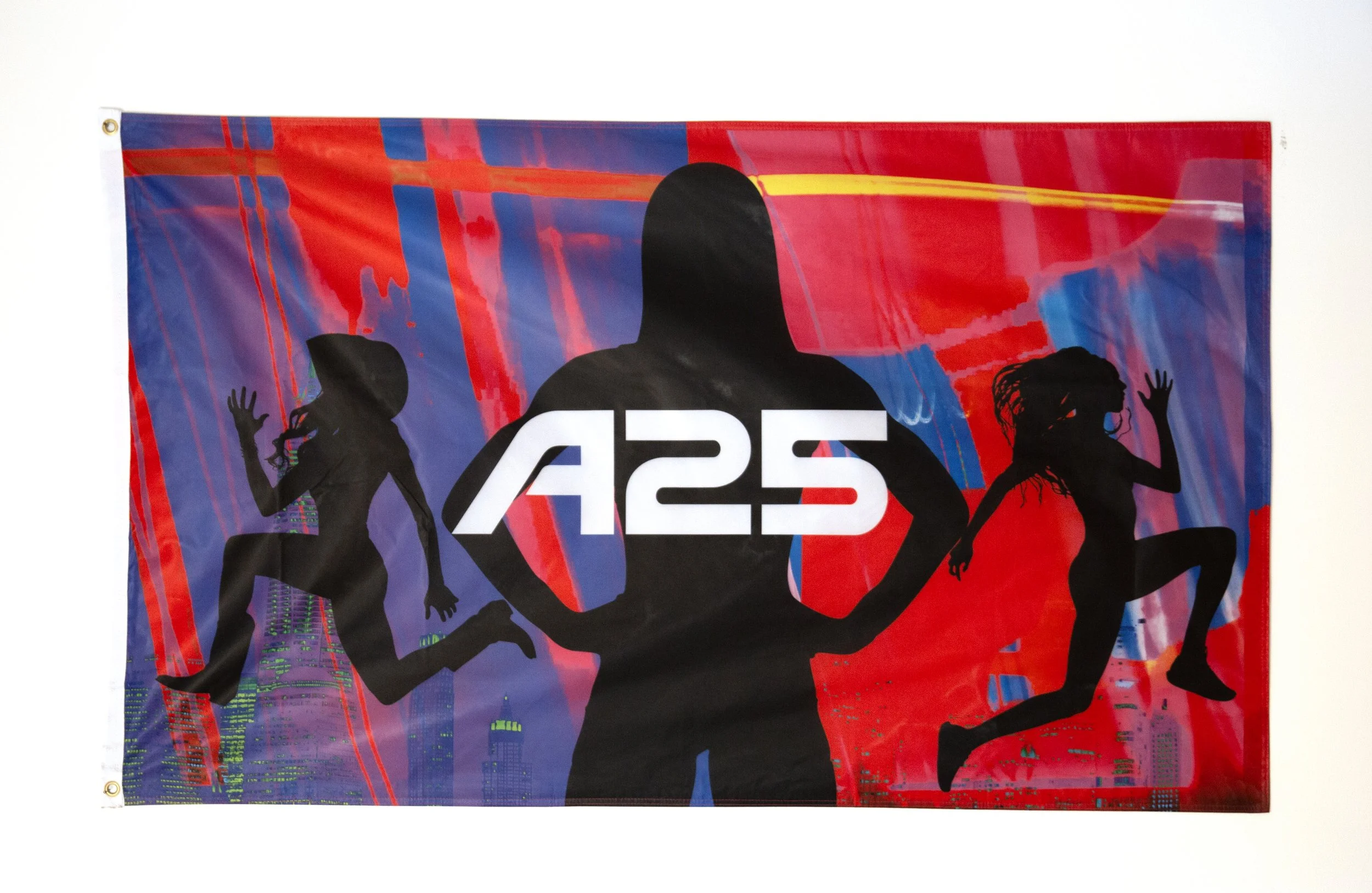Faith-Ann Young was honored to be commissioned by Athlos to design the “Goddesses In Motion” commemorative flag for Athlos, the women’s only professional track and field event in NYC, which debuted at Icahn Stadium on October 11, 2025.